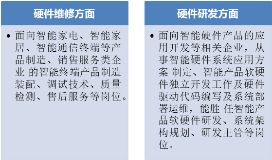 培养掌握本专业知识和技术技能,面向智能硬件应用开发领域,能够从事智能终端产品调试与维修职业岗位的高素质复合型技术技能人才。