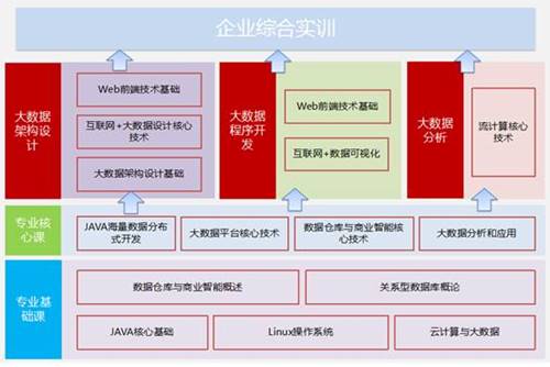 Web前端设计、Python程序设计、数据结构、MySQL、HTML5、JavaScript、Linux操作系统、Python Web开发、数据采集技术(基于新华三教学平台)、大数据平台搭建和运维(基于新华三教学平台)、大数据数据分析(基于新华三教学平台)、Spark(基于新华三教学平台)、大数据数据可视化(基于新华三教学平台)、大数据项目实践综合(基于新华三教学平台)等主要专业课程等。
