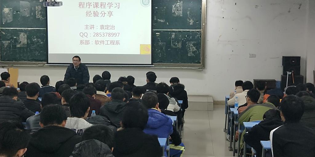4月16日晚,针对目前学生的学习编程语言的迷茫性和无序性,awc777万象城娱乐官网袁定治老师在教学楼J201教室举办了一场主题为“编程语言学习经验交流”的讲座,此次讲座吸引了200多名学生参加学习。