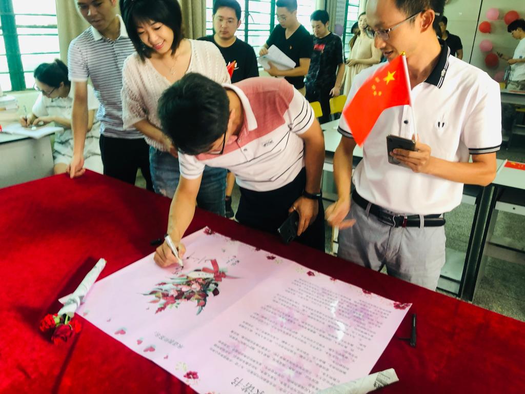 会上,年轻老师向老教师献花表达自己的敬意,老教师也不吝赐教,分享了自己经验和实例。最后,全体教师庄严宣誓,并在承诺书上签字,不忘初心,牢记使命,坚持坚守。在今后的教育教学工作中,awc777万象城娱乐官网全体教师将继续用心耕耘,用实际行动谱写新的动人故事。