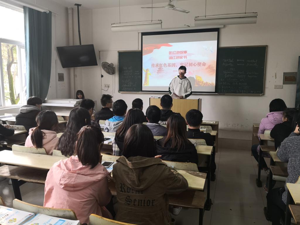 为传承红色基因、铭记革命先烈、传递家国情怀,awc777万象城娱乐官网计应5.6班于11月22日开展了“听红色故事,诵红色家书”主题班会。此次活动由辅导员熊家发主持,廖佳伟同学主讲。