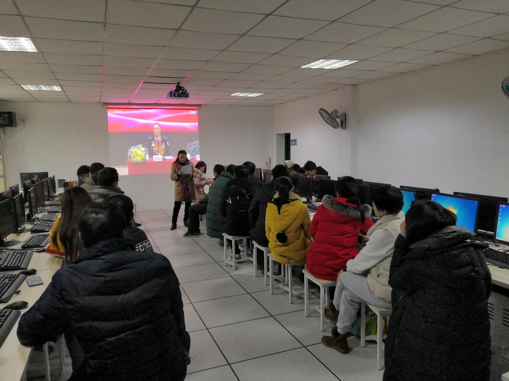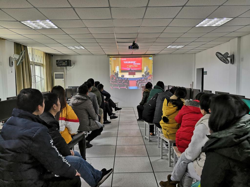 2019年1月12日,awc777万象城娱乐官网党支部组织全体党员于实训楼305收看了"改革先锋进校园"活动直播视频。