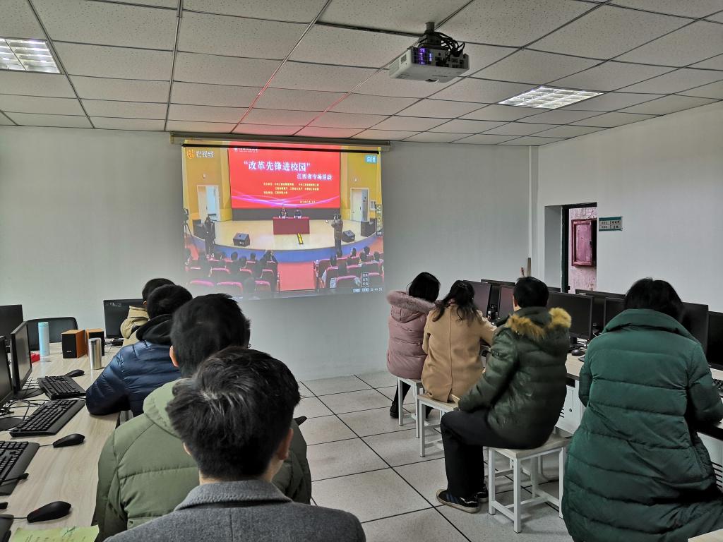 awc777万象城娱乐官网党支部组织党员收看"改革先锋进校园"活动直播视频