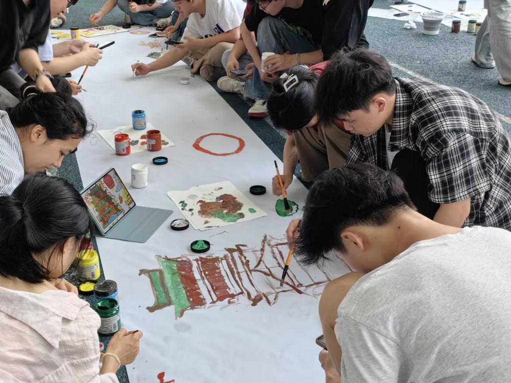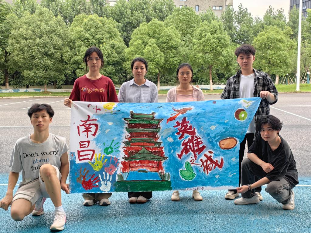 活动高潮环节,师生共同开展“我心目中的南昌”主题创作。同学们以小组为单位,用彩笔、颜料在长卷上描绘心中的城市图景:既有滕王阁的飞檐与红船的剪影,也有科技园区的高楼与生态绿廊;既有革命先烈的群像雕塑,也有青年学子奋斗的身影。一幅幅作品将红色记忆、人文底蕴与创新愿景交织,展现出新时代青年对城市发展的独特理解与美好期许。