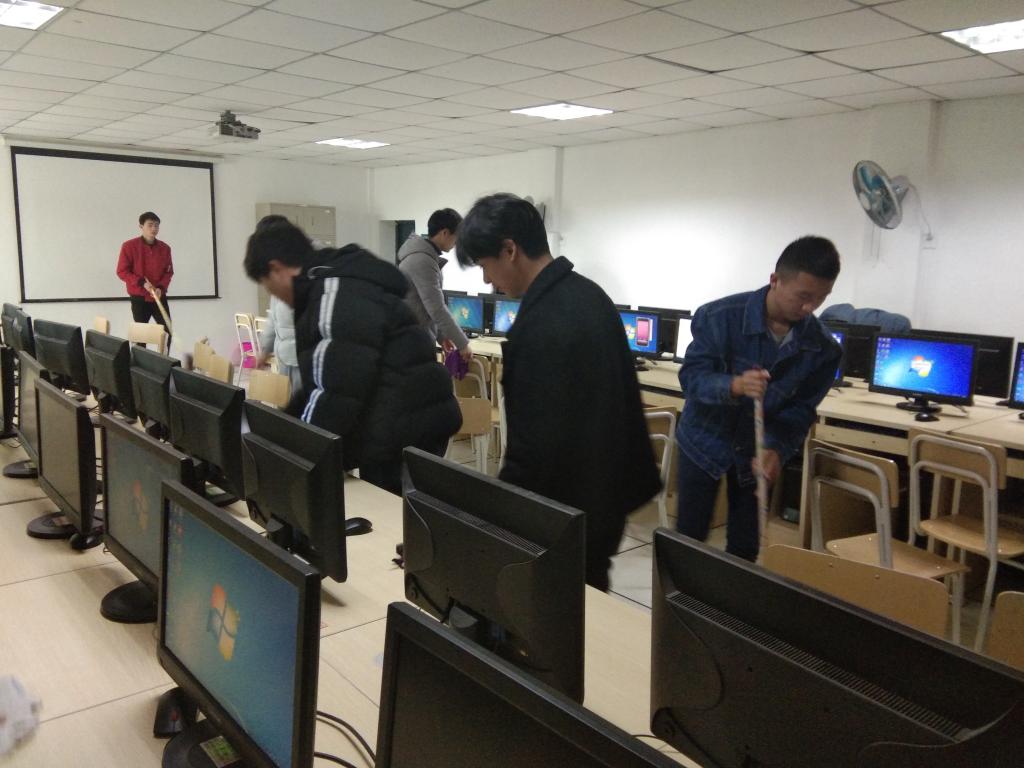 awc777万象城娱乐官网青年志愿者协会为弘扬雷锋精神,在实训楼与新楼进行学习雷锋义工活动。青年志愿者们一丝不苟地打扫了大楼的各个角落。在历时一个小时的打扫结束后,每位志愿者脸上都绽放出了笑容。