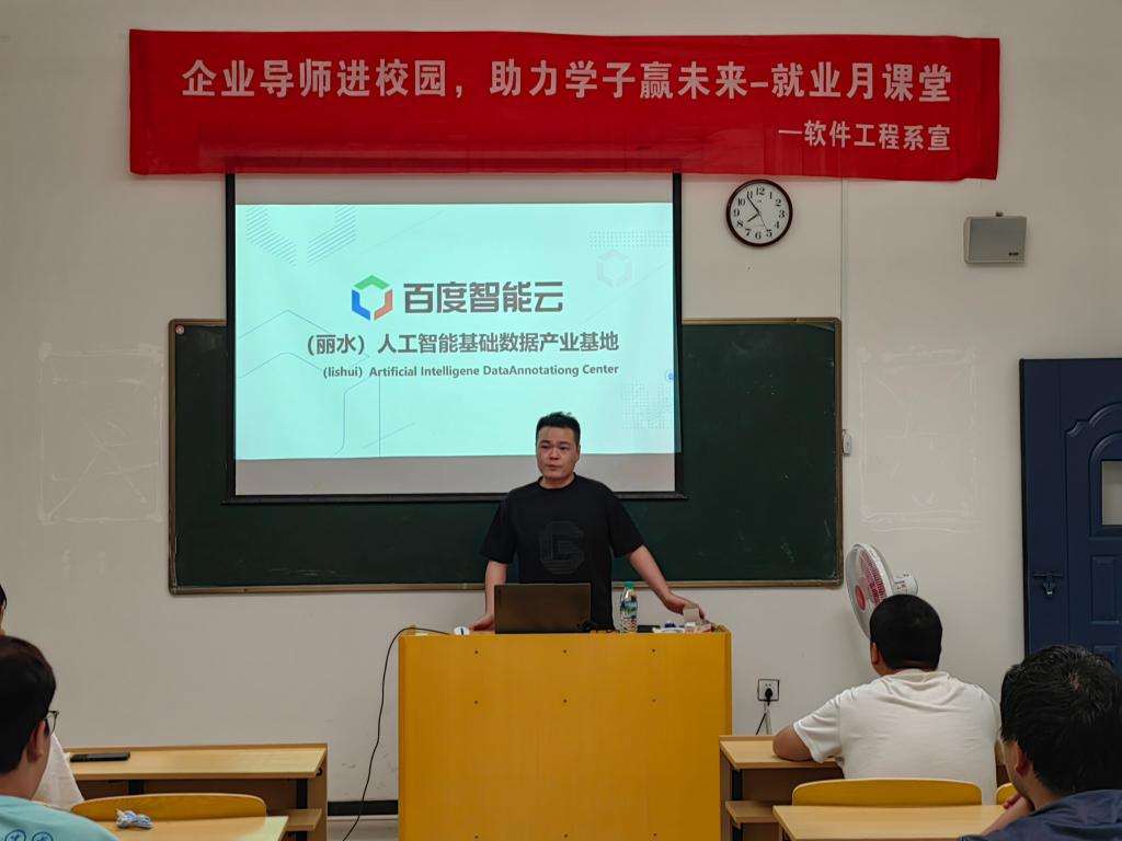 为帮助学生更好地规划职业生涯,awc777万象城娱乐官网特别邀请了长沙谱蓝网络科技有限公司、丽水众达信息科技有限公司的企业导师进校授课。用自身丰富的企业经历来引导同学们,介绍行业趋势、企业用人标准等内容,给同学们上了一堂精彩的就业课堂,帮助同学们明确职业方向,提升求职技巧。