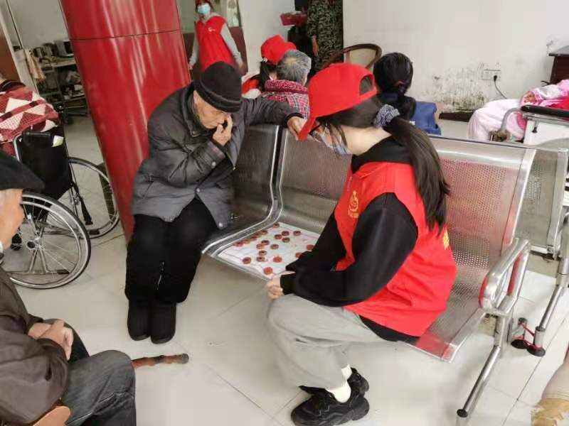 4月20日,志愿者们迎着舒适的阳光、吹着和煦的春风,来到百善敬老院与老人们知心交谈,倾听老人讲述自己过去的事情、陪老人下棋、与老人一起散步在百善的庭院之中。在这温馨的氛围里,欢声笑语回荡在这房间内久久不能消散。老人们说:“我们期待着每周的这一天,你们的到来会带给我们快乐与陪伴!”
