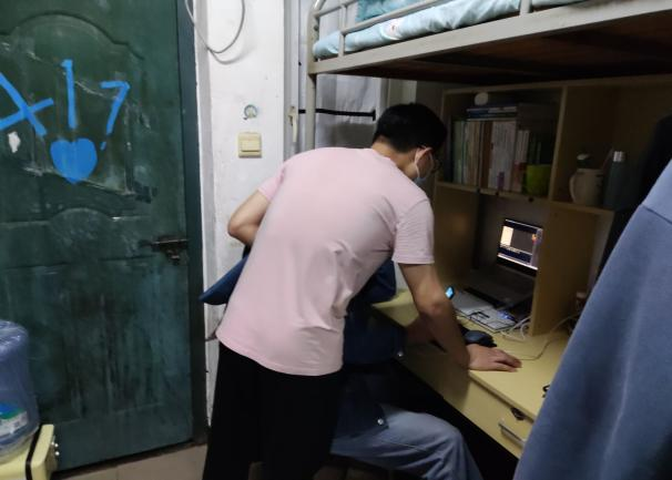 同学们的课程虽然从线下转到线上,现实中拉远师生距离,但是我们辅导员对同学们学习的关心却没有距离,不存死角。每日天一亮,辅导员就会赶到学生宿舍和自习室,看望同学们,看看他们有没有真的在上网课,督促个别爱睡懒觉的同学起来上课,问问同学们学习生活上有什么难处,听听同学们的声音,收集同学们的意见,及时反馈给老师,及时让师生们适应线上教学,争取在新的教学模式下保质保量满足到同学的学习需求。