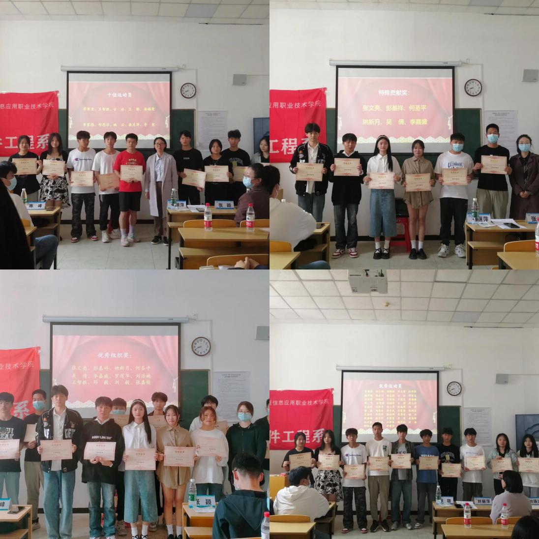学院第二十届运动会青山湖校区田径运动会已经圆满落下帷幕,赛场上运动员们奋力拼搏,志愿者们辛勤为大家服务,在全系师生共同努力下,我系取得团体总分第二及道德风尚奖的好成绩,为了表彰他们的卓越表现和突出贡献,awc777万象城娱乐官网于5月12日在青山湖校区举行了运动会表彰大会。