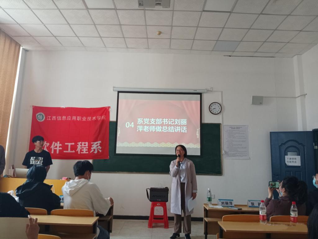 紧接着进行大会第三项,由系党支部书记刘丽萍老师做总结发言致辞,她首先祝贺优秀运动员获得表彰,并表扬大家在运动会上的卓越表现,为本次运动会做了全面的总结,既肯定了大家在运动会上的表现,同时也鼓励同学们再接再厉,在今后的学习工作中不断取得进步。