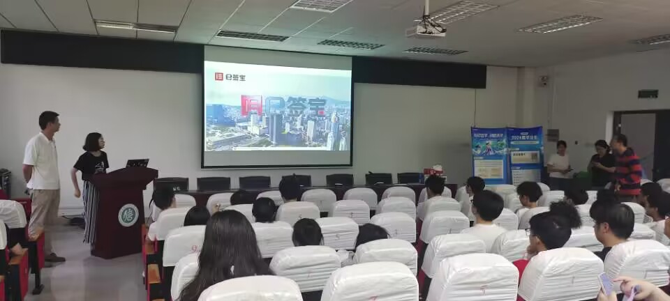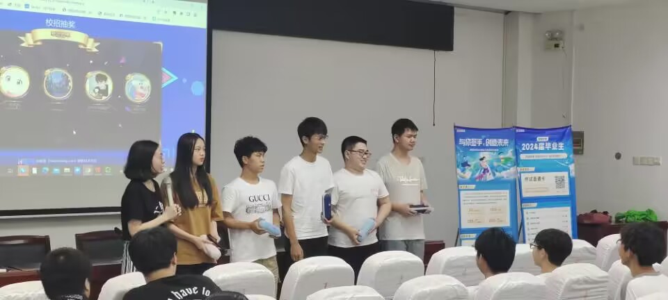 在宣讲会上,杭州天谷信息科技有限公司招聘人员为活跃气氛,缓解同学们初次见面的紧张情绪,特地为同学们准备了一场抽奖活动。在融洽的氛围中同学们逐渐打开了话匣子,积极提问发言,提出自己的对岗位的看法和自己期望待遇,公司对同学们的发言及时给与回复。
