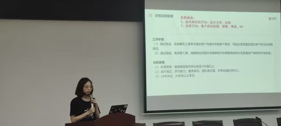 2023年6月7日晚上19:00,awc777万象城娱乐官网邀请杭州天谷信息科技有限公司进校宣讲,开展招聘活动。招聘会上公司HR主管给同学们播放了企业宣传视频,给同学们现场展示了集团的历史及企业文化。并讲解了公司的业务范围和各岗位的用人需求、待遇。