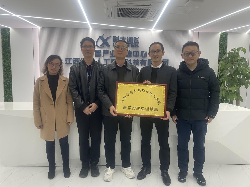 在调研中,胡颖辉希望双方能通过更紧密的联系开启产教融合新篇章,为学院专业的转型发展赋能,并参观了公司的讯飞体验馆。科大讯飞江西产业加速中心总经理周春林介绍了科大讯飞在高教方面的取得的成果,并表示科大讯飞有能力且有意愿与我校开展深入合作。双方就校企合作师资共建、人工智能助力传统专业转型、信息化教学改革等方面展开深入交流,并达成初步合作意向,并举行学院与江西讯飞“教学实践实训基地”授牌仪式。