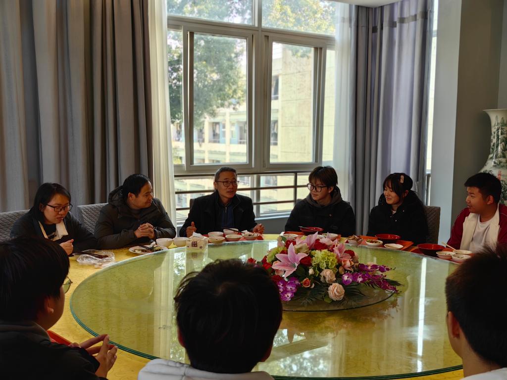 同桌用餐,与学生面对面交流,倾听学生声音,解决学生难题。12月27日中午时分,胡颖辉与23级动漫和数艺班的同学们及22级团学干部一起在食堂吃午餐。在用餐过程中与同学们亲切交流,“一个月大概多少生活费”“都来自哪里省份城市”“饭菜价格是否适宜、口味是否习惯”“学习和生活上有没有遇到过什么困难”等。他细心关注着身边围坐的每一位同学,了解学生的学习困难、生活需求、家庭情况,用餐结束后还为同学们提出了自己关于“生活”“成长”“学习”“发展”等方面的建议,鼓励在座的每一位学生:面对职教改革新形势,要强化专业课学习和知识技能提升,明确目标,抓住机会,顺势而为,积极进取,提高素质素养,增强本领,规划未来。用餐现场气氛温馨而愉快,相互交流之间,同学们真切感受到了学校关心、关爱学生成长的真情真意。