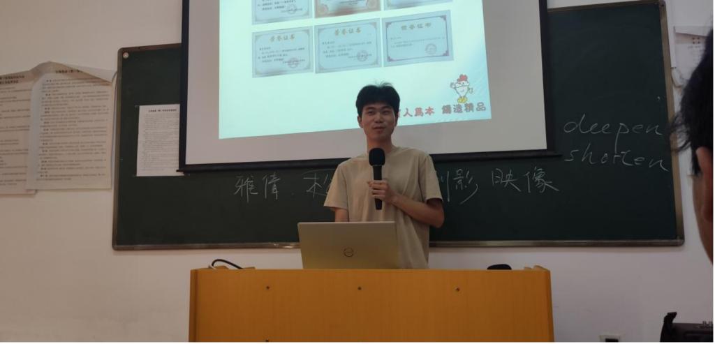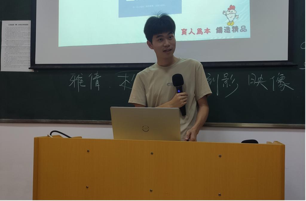 温文良在分享会上与同学们分享:“大学生活中,学习是很重要的,基础学科应该牢固掌握,在学习专业课的时候还应积极参与实践,将所学知识运用到实践中,做到知行合一。要积极参加竞赛和各种项目,将所学知识运用到实践中,提高动手能力,对专业有一个全面的认识,这对以后的学习和工作都有很大好处,为自己打好基础,创造优势。”他向同学们分享了他从一个什么也不会的初学者到逐渐经验丰富的过程。正是由于他的坚持、不放弃和坚韧不拔的毅力,使得他能够突破自己,能力不断提高,最终取得好成绩。