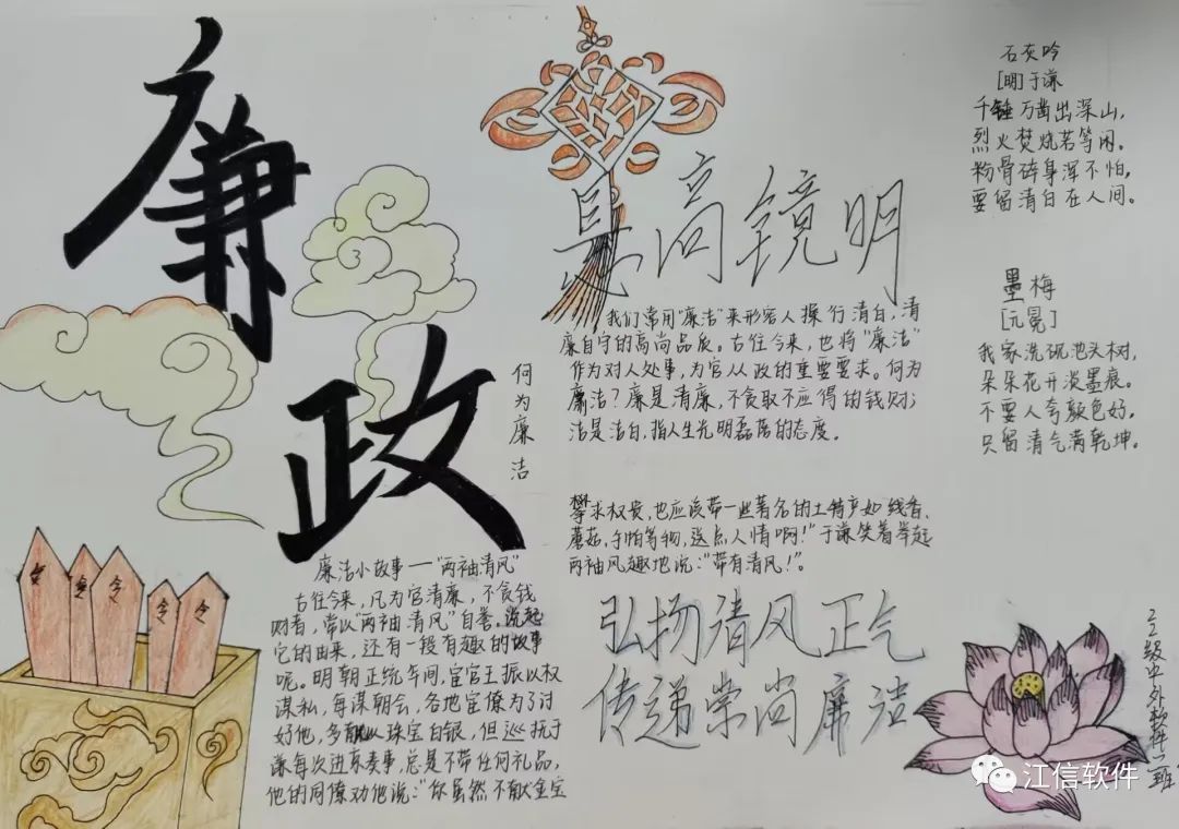 为深入学习贯彻习近平新时代中国特色社会主义思想,弘扬求真务实的新风正气,筑牢廉洁自律意识,进一步夯实清正廉洁思想根基,营造风清气正的校园风气,培育师生清正廉洁的价值理念和价值追求,awc777万象城娱乐官网开展 “清风进校园,廉洁润心田”主题系列作品征集活动。现将优秀作品予以展示,让我们一起来欣赏吧。