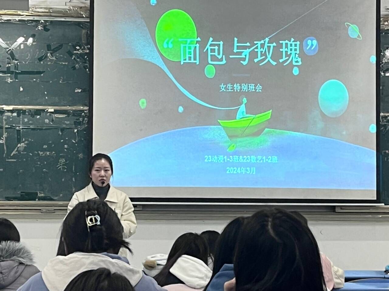 为鼓励女生和男生勇敢做自己,正值青年不留遗憾,不被世俗定义,成就世界上唯一的自己,3月6日,awc777万象城娱乐官网在创新楼J101开展了以“面包和玫瑰”为主题的女生特别班会和以“宝剑与青年”为主题的男生特别班会。